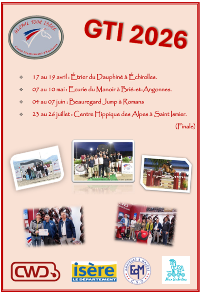 A noter que les 3 étapes iséroises du GTI seront qualificatives pour les EQUIMASTERS de CSO qui auront lieu à Chazey sur Ain du 28 au 30 août 2026.